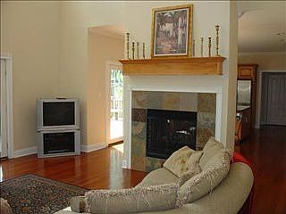 Traditional all brick home situated on over an acre in the prestigious community of Plantation Point. Screened in patio and full deck for barbecuing. Hardwood floors thought all living areas, tile in all bathrooms. Plus, other features such as den/office, formal dining room, guest bedroom on first floor with own bath, security system and pre-wired surround sound. Fully fenced yard with salt water pool.