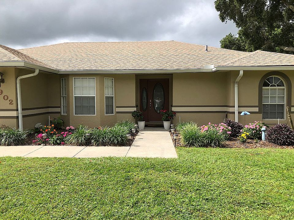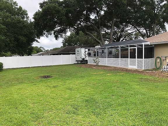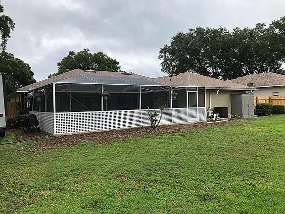 Situated between Orlando, Disney and Tampa, West Coast Beach 40mins-1hr each way. Beautiful 3 bedroom, 2 bath home has been fully updated, 2 car garage. Large kitchen with newer appliances, lots of cabinets, pantry, breakfast nook and bar. House divided with 2 living spaces. Separate formal dining. Large master bedroom 16x13 on one side of house, 2 nice size bedrooms other side. 3 sliding doors to pool area. Living areas are tiled throughout. New carpet in all 3 bedrooms each has large walk in closets. New ceiling fans, and light fixtures. Central vacuum, large laundry room with wash sink, newer water heater. New 6’ privacy fence surrounding the third of an acre property. There are two entrances to the back yard. One set of double gates and a single opening that is 6’wide. Great for parking your boat or driving mower through. Yard is also equipped with complete irrigation system for the beautiful garden in place. Large covered patio, ceiling fans,ready for tv, newly screened over salt water pool with color changing lights,removable child’s gate. Pool has newer motor for pool pump, newer heater. Quiet 2 street subdivision both cul-de-sac so no through traffic. HOA $219 a year. New Publix grocery store with restaurants, 7/11 gas station, dollar general, Burger King two minute drive. Down street from beautiful golf course and baseball/basketball courts. This is a home worth viewing.