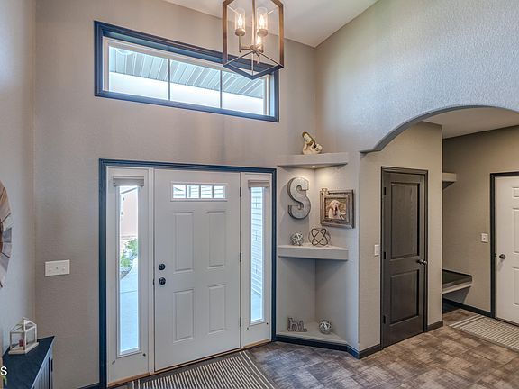 This beautifully maintained newer construction 5-bedroom, 3-bath home offers the perfect blend of comfort, function, and style—inside and out. Inside, you're greeted by a stunning vaulted front entry with beautiful dura-ceramic flooring, wood/metal mix open railing, and dramatic pendant light that really packs a wow-factor punch upon entry. It also includes a bench with extra storage and a large closet. The main floor boasts a thoughtful layout with three bedrooms, including a lovely primary suite complete with a ¾ bath and walk-in closet. The daylight lower level is equally impressive, featuring a spacious family room with a beautiful fireplace and custom surround, two additional large bedrooms, and a full bathroom. You'll love the oversized laundry room plus the mechanical room with even more storage. A huge, organized storage space is tucked behind a stylish barn door off the family room, plus there's massive under-stair storage—perfect for keeping everything in its place. The attached 978sf triple garage is fully finished with epoxied floor, heat, hot & cold water and sink, and floor drain. Enjoy your own backyard oasis with a spacious deck and an impressive 357 square feet of gorgeous stamped concrete patio—ideal for entertaining or relaxing in peace. The fully fenced yard offers privacy on the sides and a rare open view in the back with NO backyard neighbors. Enjoy the convenience of an extra parking pad and a large 16x16 shed for all your storage needs. The landscaping is meticulously designed for both beauty and ease of maintenance. This home truly has it all—space, privacy, and beautiful finishes throughout. Don't miss the opportunity to make it yours!