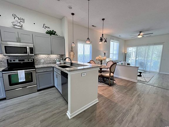 OPEN HOUSE AUGUST 31ST FROM 12:00-3:00! 2/2 Furnished Water View Residence At Myrtle Pointe; A Community Within Plantation Point. This Ground Floor Condo Has Been Updated. Upgrades Include: Paint, Storm Door, Cabinets, Custom Butlers Pantry, Granite Countertops, Stainless Appliances, Backsplash, Black Sink With Faucet And Pendant Lighting. LVP Floors Throughout The Kitchen, Living, Dining, Sunroom And Hall. Along With Paint, Fans And Light Fixtures. And A Chandelier. Back Door Replaced 06-2024. The Dining Area Has An Extra Window And New Light Fixture. New Window Treatments Throughout, Give A Bright And Airy Feel To This Property. There Is A Modern Horizontal Electric Fireplace In The Sunken Living Room. The Primary Bedroom Has Sliders Onto The Enclosed Carolina Room And A Private Ensuite Bath With Double Sinks, And Jetted Garden Tub. Furnished Condo Also Comes With Washer And Dryer. Carolina Room And Fenced Back Patio Have Beautiful Views Of The Pond And Wildlife (An Otter, Mallard Ducks, Canadian Geese, Birds And Bunnies). Amenities Include Pool, Sun Deck, Tennis Courts, Grilling Area, Fitness Room, Sauna, Library And Spacious Clubhouse With Full Size Kitchen. Myrtle Pointe Is A Mile And A Half From The 38Th Ave Beach Access. Only A Minute To The Grocery, Pharmacy, Gas Station, Fast Food And Casual Dining. Myrtle Beach Airport Is Only 15 Minutes Away.