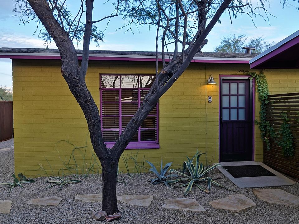 This beautifully furnished studio casita is only nine minutes north of the U of A via the Mountain Ave bike path and Cat tram. The quiet desert landscape with pergola offers ample outdoor enjoyment. A wall-mounted HDTV and Alexa are included. The newly insulated attic and one-ton mini-split offer excellent energy efficiency. Other upgrades include recessed dimmable LED lights throughout w/ remote control ceiling fan and extra electrical outlets installed. Laundry facility in-unit, off-street covered parking, and storage building on-site. Custom metal fences with separate locking gate offer privacy and convenience. This is a one-of-a-kind rental home! Water, sewer, and garbage/recycling are included. The refundable security deposit is one month's rent minus a one-time $250 cleaning fee. 12-month lease preferred, but lease terms are negotiable.