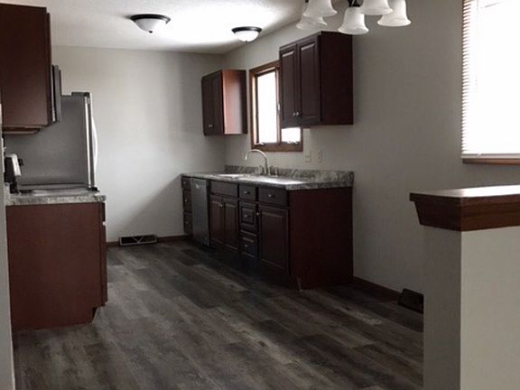 Desirable Twin Ranch Style Home in South Central Sioux Falls area. Remodeled main floor newer stainless steel kitchen appliances and cabinets, newer lighting throughout the home. Finished basement w/ 2 large rooms. Main floor laundry w/ front load washer and dryer (not in pictures). 1 stall attached garage. No pets. No smoking or vaping. Security deposit required w/ first month rent. Background check completed w/ application. Located on a quiet street w/easy access to all areas of the city. Living room (19x12), Kitchen (10x20), Master bedroom (10.5x14), Bedroom (10x11), Basement: Small Room (11x16), Large Room (11x30). Renter pays all utilities. Absolutely no pets. No smoking. Security deposit required w/ first month rent. Renter pays for Electric, Gas and Water. No Pets. Garbage service is included. Renter is responsible for lawn mowing and snow removal of Sidewalks. Driveway snow will be cleared by landlord