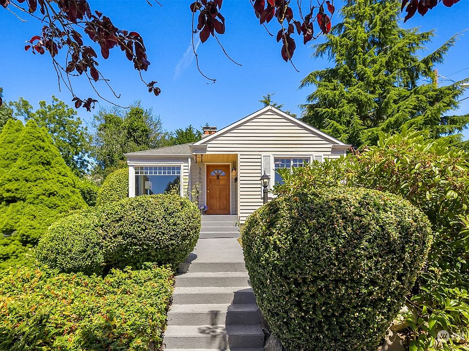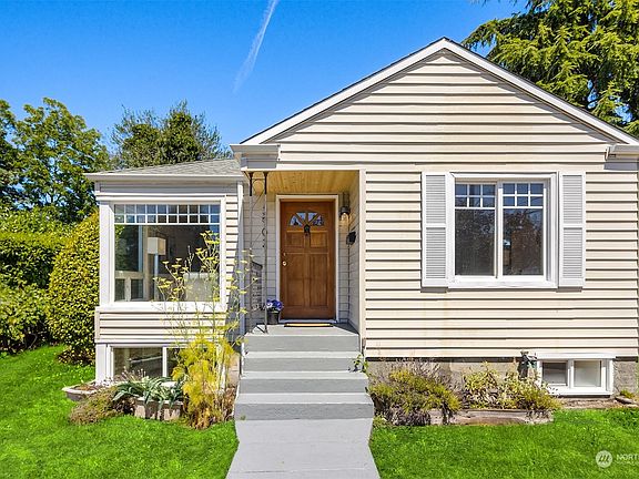 Enjoy this 3 bedroom, 2 bath Craftsman house updated to retain charm. Remodeled kitchen and new appliances including quartz countertops. Naturally lit dining room opens to living room with plenty of room to entertain with hardwood flooring throughout, wood-burning fireplace, and peekaboo views of the Sound. This home is move-in ready! Lower level includes a wood burning fireplace, beautifully remodeled bathroom, master bedroom with walk-in closet, 3rd bedroom or in-home office, and laundry! Private backyard is fully fenced with fruit-bearing Asian pear tree, plum tree, lilac and blossoming European pear tree! Detached garage and playground, deck, and much more! Minutes from Lincoln Park and away from main roads. Don’t miss the opportunity!