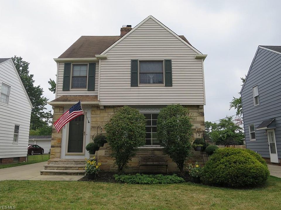 Darling vinyl sided colonial with special features including cove ceilings and gleaming hardwood floors, lovingly maintained by current owner. Light filled living room with large picture window and wood burning fireplace opens to formal dining room with chair rail and built-in china cabinet, perfect for displaying your collectables. A family room addition with beamed ceiling, built-in recessed cabinet and three walls of windows overlooking the rear yard is accessed off the dining room. The kitchen is updated with a pot rack and handy pass through to the family room. The second floor consists of three bedrooms and a full bathroom. The walk up unfinished third floor could eventually be finished and provides wonderful bonus storage. The partially finished lower level offers a finished recreation room and paneled bar and would make wonderful flex space. Additional features include replacement windows, central air, glass block windows in the basement and more. Conveniently located within walking distance to the Cedar Warrensville business district, Geraci's, Bialey's Bagels, Whole Foods, John Carroll University, parks and more. 10 minute drive to University Circle, University Hospitals, Cleveland Clinic and CASE. Just charming, will not last!