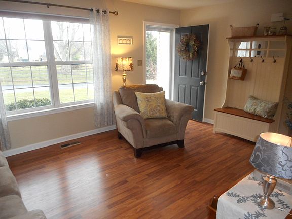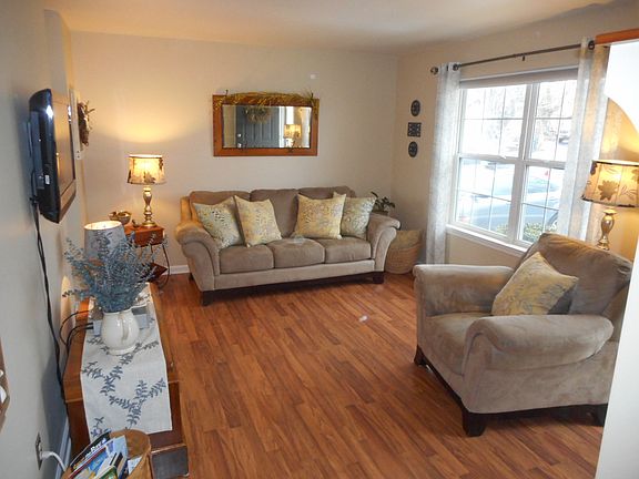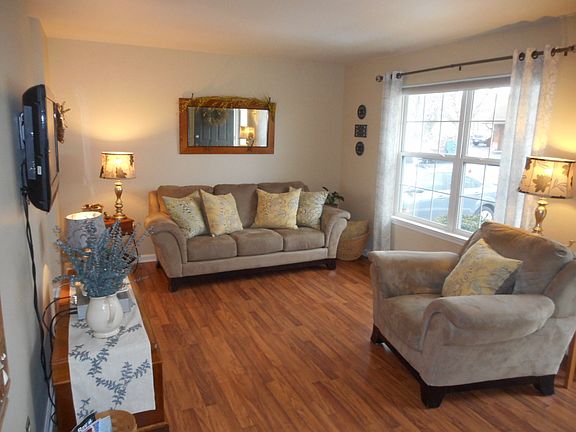 Gorgeous rancher with laminate flooring in kitchen/dining rm combo and living rm, walk in pantry, ceiling fans in bedrooms. Office and dry bar on lower level. Sliding glass doors to deck and corner lot make this a great space for entertaining. Garage and gas heat. New architectural roof and gas hot water heater 2015. Stainless steel appliances, washer and dryer convey. Public water & sewage. Directions: Main