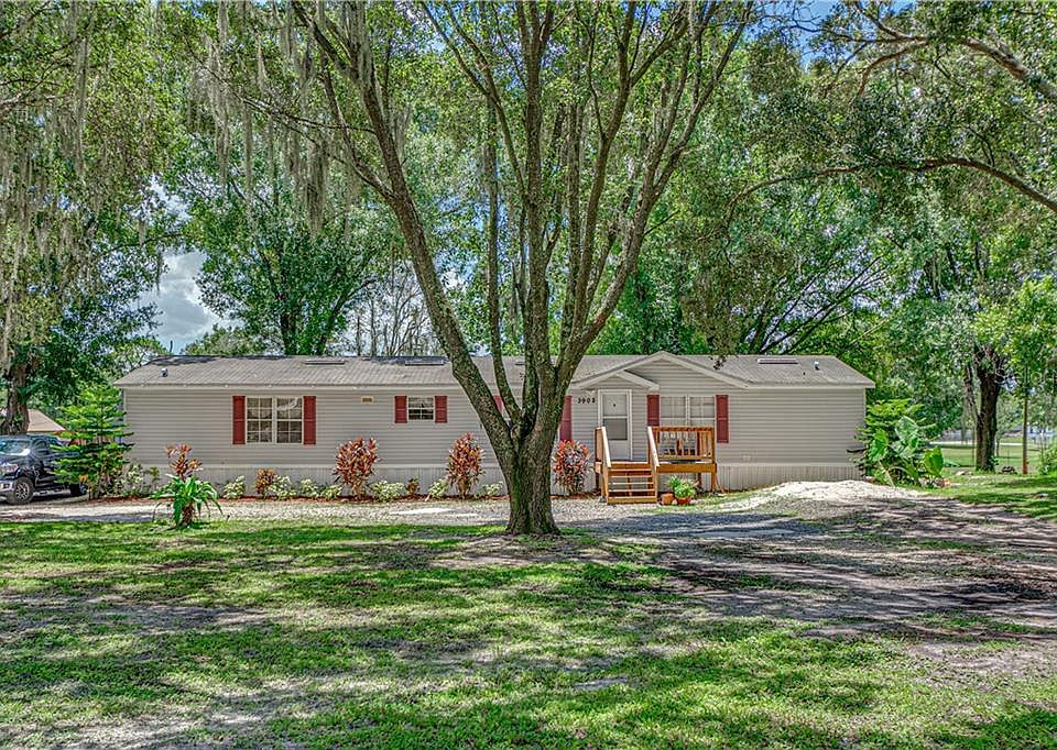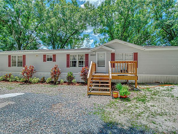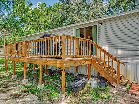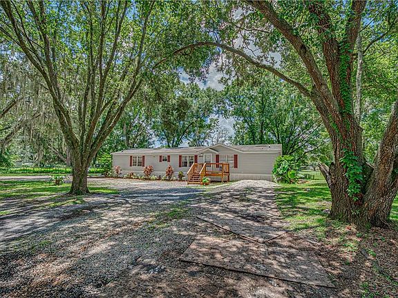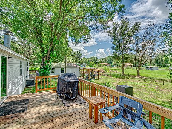Looking for room to expand INSIDE and OUTSIDE? This 1999 Fleetwood home sits on 1.14 acres, complete with some fence, some cross fence, large shed with chicken coop and lean to for a mower. Beautifully situated under a grove of storm-proofed oaks trees, welcoming large circle driveway with RV hook up for electric, water and sewer; and 3 newly built decks. A well-maintained spacious home has newly installed laminate flooring with an open plan with split bedrooms which gives the master plenty of privacy. Huge master has two complete bathrooms: one with garden tub and the other with shower. Both have their own walk-in closet; the bedroom is the entire width of the home with exterior door to the back deck. New front door and new storm door welcome you into large dining and living room with wood burning fireplace, newer insulated slider with built-in blinds, also opens to the back deck. Island kitchen with updated oak cabinets and faux stone formica countertops will be enjoyed by the entire family with room for everyone and has a family dining area. Aero water filter system installed on the kitchen sink. Secondary bedrooms just off kitchen, as is the indoor large utility room with tons of room for storage and a new exterior door. The well comes with complete house water filtration system and 3 year old pump. Many of the ceiling fans have been updated. You'll love being in the country, but still just a short drive to S Florida Avenue or County Line Rd. New Publix planned for nearby on County Line Rd. New homes being built nearby on 50 and 60 foot lots...but you, quick buyer, will have over an acre. Home warranty provided with a full price offer.