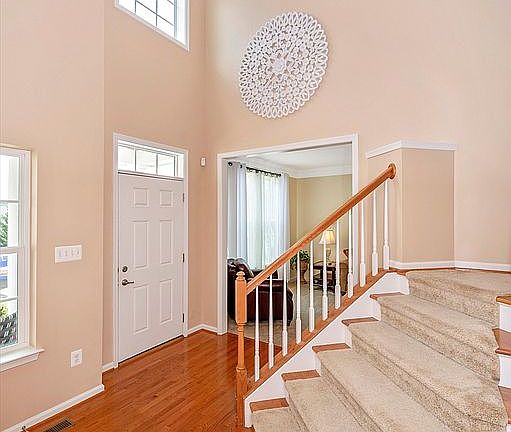OPEN HOUSE 7/16 and 7/17 Popular model home boasting light-filled interiors, two-story foyer, double crown molding, wainscotting, chair railing, tray ceilings, lofty windows, gleaming hardwood floors, and more to appreciate throughout; Formal living and dining rooms perfect for entertaining family and friends; Gourmet eat-in kitchen complimented with ample 42 inch cabinetry, sleek stainless steel appliances, oversized island to include a breakfast bar, granite countertops, decorative backsplash, extra countertop space, sun room, and easy access to the amazing backyard; Family room set off the gourmet eat-in kitchen with new plush carpet, fireplace and built-in manel, and custom shiplap, powder and laundry room complete the main level; Primary suite presents additional crown molding, two walk-in closets, and luxurious primary bath with dual vanities, glass-enclosed shower, water closet, and soaking tub; Four generously sized bedrooms, and a full bath conclude the upper level sleeping quarters; Lower level is equipped with a recreation room, another powder room, and lots of storage. Exterior Features: Landscaped grounds, premium lot, covered front porch, paver patio, variety of perennials, extensive hardscape, sidewalks, street lights, great community atmosphere including a swimming pool, tennis courts, and playgrounds. Recent updates: Dishwasher, driveway retaining walls, rear paver patio with firepit, and all newer landscaping. Area Amenities: Enjoy a vast variety of shopping, dining, and entertainment options in the town of Mt Airy. Outdoor recreation awaits you at some of the state's most beautiful countryside, wineries, craft breweries, creameries, and golf enthusiasts have quick access to Rattlewood Golf Course and The Links at Challedon, and more. Convenient commuter routes include I-70, I-270, I-695, and I-95