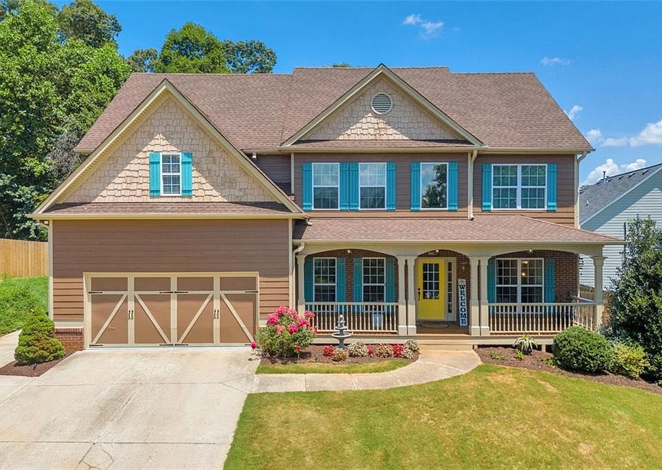 Welcome to your dream home in the highly desirable Walnut Grove neighborhood! This beautifully maintained 5-bedroom, 3-bathroom two-story residence offers 2,593 sq. ft. across the main levels plus a fully finished 964 sq. ft. walk-out terrace level—perfect for multi-generational living or hosting long-term guests. The terrace includes its own kitchen, full bath, and private bedroom, making it ideal for in-laws, a grown child, or visitors seeking privacy and comfort. From the moment you arrive, the charming covered front porch and bright, welcoming foyer set the tone. To the right, a cozy den offers a perfect spot for a home office or reading nook, while a formal dining room on the left is ready to host holiday meals and special occasions. The main level also features a convenient guest bedroom, offering flexibility for family or friends. At the heart of the home, the expansive two-story family room is bathed in natural light and anchored by a beautiful fireplace, creating a warm and inviting atmosphere. The chef-inspired kitchen features generous cabinetry, ample countertop space, a rolling island, and a bright breakfast area that opens to a massive covered porch (12x28)—perfect for al fresco dining, grilling, or relaxing while overlooking the private backyard. Upstairs, retreat to a spacious primary suite with a large walk-in closet, a hidden storage area, and a luxurious en-suite bath. Additional bedrooms offer ample space for the whole family. With plenty of parking, this home is built to accommodate a growing household. Located just minutes from shopping, dining, Lake Lanier, and several storage facilities, this home delivers the perfect blend of comfort, convenience, and lifestyle.