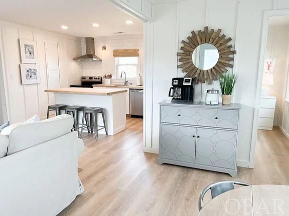 This adorable cottage on the canal in northern Avon is amazing and was completely remodeled in 2022. It features LVP flooring throughout, a brand new kitchen with stainless appliances, and a newly renovated bathroom. The home features two queen bedrooms with a full bath in-between, and a super cute bunk room for the kids. All appliances, washer/dryer, and HVAC system were replaced in 2022. There are multiple spacious decks and absolutely amazing canal and sound views. "Flee to the Sea 2" sits at the end of the canal with quick access to deeper sound water and is a short walk to the beach access. The enclosed storage area under the house features the laundry area, owners storage, and a second refrigerator. Additionally, there is a carport beneath the home, convenient outdoor shower, fish cleaning station, and a small dock for launching your kayaks & paddleboards or for a small boat. The homeowners rent through VRBO and AirBnB only, allowing the new owner to continue to do the same, switch the home to a local property manager, or make excellent use of the home yourself. The home’s first 12 months' rental income was phenomenal at $46,072 (Aug. '22 through July '23) even with regular use by the homeowners. While officially permitted for 2 bedrooms, the bunk room was added in 2022 and the homeowners advertise the third bedroom. Come and see this adorable home today.
