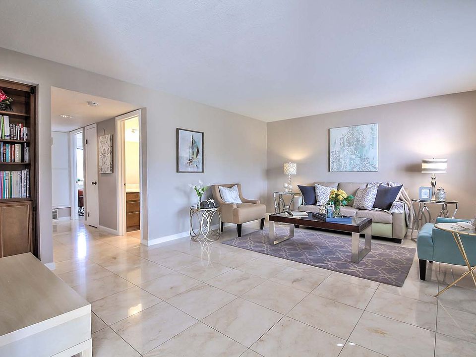 Light and Bright Condo in Central Fremont. In the heart of Fremont, come home to a single-level 2 bedroom, 2 bathroom condo. This 1,104 sq. ft. home features gorgeous marble tile floors; plantation shutters; a breakfast bar in the kitchen; a built-in book case; an in-unit washer and dryer; and a detached garage that is big enough to park 2 small cars tandem. 39027 Walnut Terrace features a premier location overlooking Walnut Place's greenbelt and swimming pool. Community amenities also include a spa and volleyball court. HOA dues of $449 per month include water, garbage, hazard insurance, and common area and exterior maintenance. You are located close to BART, hospitals, grocery stores, shopping centers, and Lake Elizabeth. UNIT FEATURES: * 2 bedrooms, 2 bathrooms * Approximately 1,104 sq.ft. per public records * Built in 1984 * Plantation shutters * Marble tile floors * In-unit washer and dryer * Detached garage with tandem parking for 2 small cars * Current HOA dues: $449 per month COMMUNITY FEATURES: * Greenbelt * Swimming pool * Spa * Volleyball court * Convenient central Fremont location near BART, hospitals, grocery stores, shopping centers, Lake Elizabeth 23