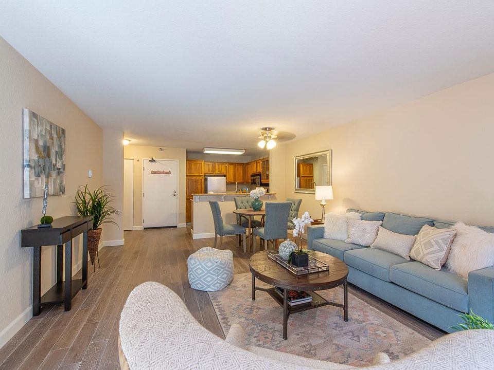 Stunning unit located in the desirable Monte Merano Community! This updated ground floor residence with an open concept floor plan features a chef-grade kitchen, prefabricated flooring throughout, 1 bedroom and 1 bathroom and a large patio thats perfect for relaxing or entertaining. In-unit washer/dryer, 1 car secured parking and additional storage complete this home. Indulge in Monte Meranos luxurious amenities which includes tennis courts, swimming pool, spa, fitness center and social lounge. Short distance to Bart, Lake Elizabeth, restaurants and shops.
