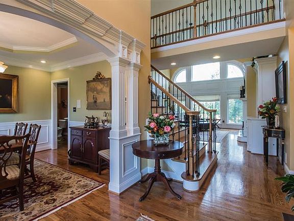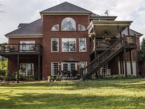 Absolutely stunning 1.5 story brick, walkout home on a corner lot- in exceptional, turnkey condition. The grand foyer with wrought iron, spindled staircase is beautiful and leads to a gorgeous great room with floor-to-ceiling window, built-in bookshelves, marble tiled fireplace roughed in for your flat screen television. The dining room features hardwood floors, trayed ceiling, panel and crown molding. The beautiful cherry cabinets, granite tops, walk-in and stainless steel appliances make for wonderful kitchen. The master is on the main floor with trayed ceilings with the bath featuring travertine tile, two sinks, extra large walk-in closet, and whirlpool tub with separate shower. Upstairs you'll discover additional bedrooms perfect for your family or guests. The full finished basement with 9' ceilings has a large family room with custom built-ins, tiled bar area with wood ceiling, full bath with tiled floors and shower, and a lovely beamed ceiling in the game area. Outside the large, covered deck overlooks a semi-private backyard with mature trees. Besides the three car garage, there is an extra one car John Deere garage near the lower level walkout which is perfect for a tractor room or storage. Additional features: dual HVAC system, intercom, underground fence, and pre-wired for central vac. This is an exceptional, stately home!