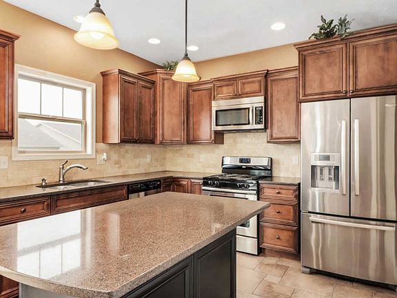 Traditional 2 story in Eagle View South. 9 foot ceilings on main floor and basement. 2 story foyer with dual stair case. Main floor features Formal Living, Dinning, family room, large eat in kitchen, half bath and laundry room which comes with washer and dryer. Kitchen has island, pantry, all appliances, Granite counter tops and maple cabinets. Formal dining with wood floor. Second floor features all 4 bedrooms with 2 full baths. Master bedroom has cathedral ceilings and huge walk in closet. Master bath features Double vanity, separate shower and whirlpool tub. Full finished basement has large family room with wet bar. Theater room with all theater equipment's and full bath. Large backyard is fully fenced. 14 acre city park adjoins neighborhood. All information deemed to be accurate but not warranted.
