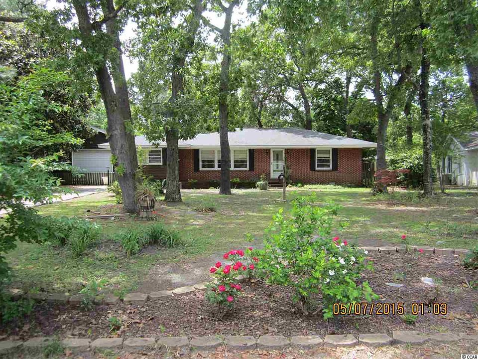 Own a 3 bedroom, 3 bath home in the heart of Myrtle Beach on a nice wooded lot. 1/2 mile to the Beach and convenient to Myrtle Beach Schools. Hardwood floors in Living areas and Bedrooms. Tile in Kitchen and Baths. BIG REDUCTION IN PRICE - MOTIVATED SELLER. Owner upgraded the HVAC in 2008, the roof in 2005 and the kitchen appliances, kitchen backsplash and kitchen and bathroom fixtures. Lots of windows and a kitchen skylight for natural light. French doors led out to the deck with a Hot Tub. Buyer to have Hot Tub checked. Well insulated home and the detached Garage is a man's dream! The vaulted Garage measures 20 x 30 and has 2 industrial doors so driving through is possible to a cement pad out the back of the Garage. Industrial lighting in the Garage as well. Also on the property is a 6 x 8 storage shed and is wired for electricity. Surround sound speakers wired in Living Room. Measurements are approximate, Buyer must verify.