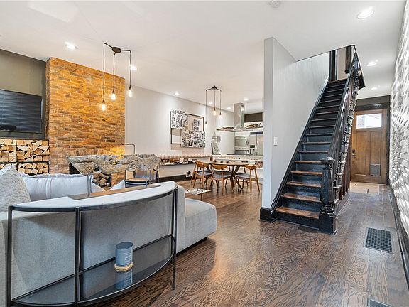 Amid the best shopping and attractions of the East End, all interiors of this home, including the kitchen and bathrooms, have been redesigned, featuring open-concept living and artistic finishes. The spacious primary suite commands the private third floor, with a built-in dressing room, fireplace, and private shower overlooking the city skyline. Access through a skylight to the rooftop offers the opportunity to put on a roof deck with a city view. The second floor has two generously sized guest rooms with an additional full bath. Wood and tile floors throughout. A finished basement with space for working, exercise, and a third bathroom with a dog shower is a huge bonus. Brand new roof in July 2024. Ample street parking and a private planted courtyard completes the package. Steps away from the heart of Lawrenceville and Bloomfield, or quickly bike, bus, or drive to the Strip District, Downtown, East Liberty, Garfield, Oakland, the North Shore and more. Welcome home!