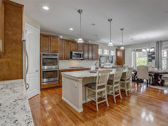 Home for the holidays in your new beautiful home built for entertaining! Luxury ranch floorplan is located in the highly sought-after Terrain/Castle Oaks Estates community which includes ample open space, walking trails, pool, clubhouse, and common area maintenance. Holiday shopping will be a breeze in your new home, located only 8 minutes away from Castle Rock Outlets. Forgot something on your grocery list? Sprouts and Target are only 7 minutes away! As your guests arrive they'll be greeted by beautiful open-concept views. Your new home features two additional bedrooms to the left of the front door entrance with a shared private bathroom and a sliding door that can be closed to block views to the hallway leading to both bedrooms. Walking further into your home you'll be greeted by an open concept for entertaining with an oversized huge kitchen island, wine fridge, bar/serving area, newer upgraded appliances, brand new backsplash, new tile surrounding the fireplace, and more! But the upgrades don't stop there! Through the oversized double-paned windows and sliding patio door you'll see the huge deck with lighting, fireplace, and mature upgrading landscaping. All carpet in the home is under 1 year old! Primary bedroom is oversized for a cozy reading nook and your primary bathroom features an oversized tub, glass stand-up shower, double sinks and huge walk-in closet leading to the laundry room with luxury shelving/organizing system. The basement is newly finished in 2022 adding an additional bedroom, closet space, kitchen, and media room. Over 1,000 unfinished space still remains- home gym, utility room, storage area... you decide! The garage features an oversized 3-car tandem, finished painted walls, finished flooring, access door to backyard, and 240 wire is live. Paint, and leftover construction materials to stay. W/D included in sales price. BRING YOUR OFFER, SELLER IS READY TO MAKE A DEAL ON THIS BEAUTY!