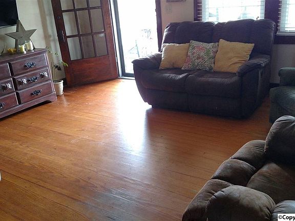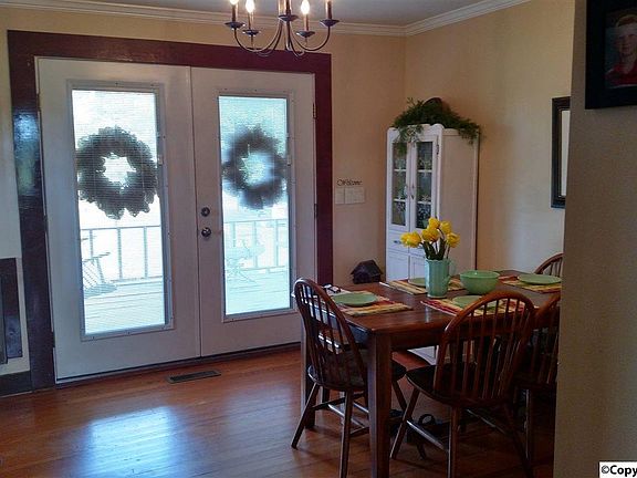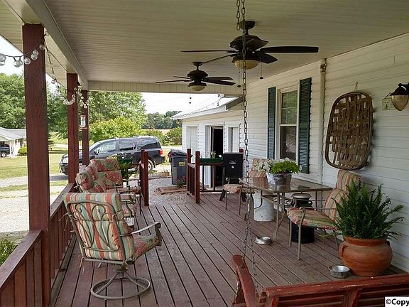 This charming porch is screaming sit down with me and enjoy the surroundings. This sweet house has beautiful wood floors. You will feel like you have gone back in time with all the wood work it boast. The very large back porch is equally nice to share with the entire family. The large garage has room for cars and area to work or store things. Come see us in Eva!
