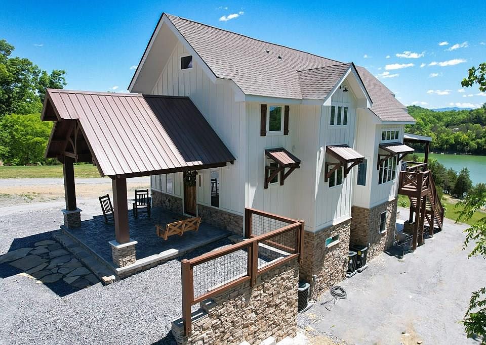 Nestled in the heart of East Tennessee on Douglas Lake, this brand new custom-built home offers the perfect blend of luxury, comfort, and tranquility, boasting 3 bedrooms, 3.5 bathrooms, and over 3500 square feet of living space. As soon as you arrive, you'll be captivated by the breathtaking lake and mountain views stretching out before you. With your own private swimming platform already in place, you can spend endless hours boating, fishing, or simply soaking up the sun. The open-concept living area is flooded with natural light, creating an inviting space to relax and entertain. The gourmet kitchen features top-of-the-line appliances, gas cook tops, custom cabinetry, and a large island perfect for preparing family meals or hosting guests. The main and lower levels of the home have been designed to perfection and are complete with their own living quarters including kitchen, laundry, and bedroom areas, providing ample space for family and friends. From the moment you walk through the door, you'll marvel at the sweeping views of the lake that can be enjoyed from every area of the house. The main level is highlighted by a spacious open floor plan that features a large living room, dining room, and modern kitchen complete with high-end appliances, perfect for hosting family gatherings or nice dinner parties with friends. The main level also provides access to a large deck, perfect for outdoor entertainment. The lower level, with its own living space, provides privacy for visiting family and guests, perfect for extended stays. It features a second living area complete with an open concept kitchen and dining space, two additional sleeping areas, and a separate laundry room. Whether you're seeking a year-round residence, a personal vacation home, or your next investment property, this lakefront paradise offers the perfect escape. Current offer contingent on buyers closing on another property this month. Seller is still allowing showings and willing to accepting backups