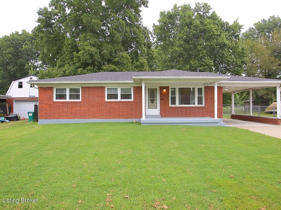 Welcome to 3903 Lees Lane. This fantastic, completely renovated, brick ranch is located in between the Pleasure Ridge Park and Lake Dreamland neighborhoods. A lovely covered front porch greets you as you walk up. Heading inside you will immediately notice the brand new laminate flooring that is throughout the main living areas. The living room is spacious and has an abundance of natural light from the triple front window. Behind the living room is the dining room. The dining room has a built-in china cabinet and opens to the galley style kitchen. The gorgeous, updated kitchen offers granite countertops, tile backsplash, and stainless steel appliances. The hallway off the living room leads down to the bedrooms and a full bath. The bedrooms are all good sized and have brand new carpet. The updated full bath offers tile flooring and a whirlpool tub with tiled surround. Head downstairs and you will find an awesome finished basement with new laminate flooring throughout. The basement offers a huge family room, 3 spare rooms that can all be used as bedrooms, 2nd full bath with shower stall, and unfinished laundry and utility room. Heading outside from the kitchen side door leads out under the attached 1 carport. There is a 2nd, open air, parking spot on the other side of the carport. Following the driveway into the backyard leads down to the detached 2 car garage. The garage is extra deep, offering plenty of space to hold all your lawn equipment and leave room for a small workshop area. The fully fenced backyard has a fire pit and ample room for kids or pets to play in. This home also backs right up Riverside Gardens Park. There's even a convenient gate built right into the fence. Additional updates include: replacement windows, new whole house foam insulation, new lighting throughout, new ceiling fans throughout, new keyless entry locks, and fresh paint throughout. Don't miss this one and schedule a showing today!