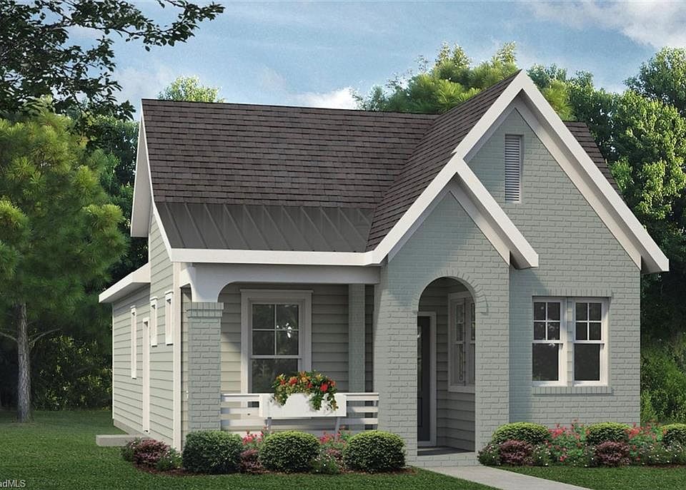 The Vineyard C Destination Cottage by Garman Homes in Montrose Village at Grandover. This elevation does have some brick on the front (as shown in rendering) Features 9' smooth ceilings, soft-close doors on all cabinets, a tankless water heater, a kitchen with granite countertops, and stainless steel appliances. LVP floors except for carpet in all bedrooms and tile in all baths. Single car detached garage, Montrose Village HOA includes lawn mowing, Grandover HOA includes Community pool and racket Club on Pemberton with Fitness center, playground, clubhouse, and tennis courts.Other opportunities are available to build/customize on other homesites. Model is open 10-5 Mon-Sat & 1-5 Sunday.