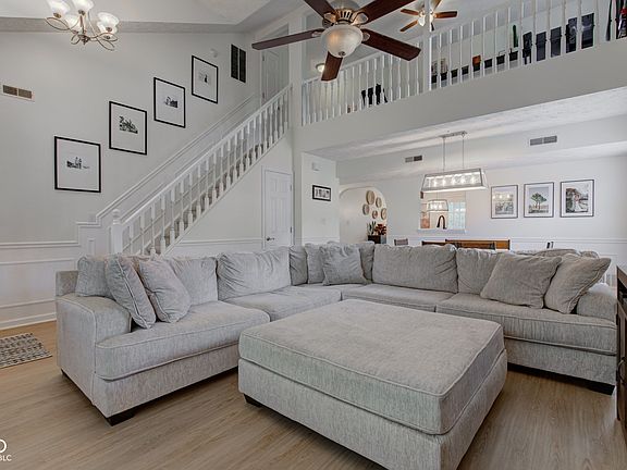 Welcome Home! This two-story with main level primary suite sits on a large corner lot in the desirable Setter's Place neighborhood. Close to all Carmel/Westfield has to offer! All new LVP flooring on the main level. Primary en suite bathroom has double vanity and walk in closet. Upstairs you will find two spacious bedrooms with walk in closets, bathroom, and a large loft open to the HUGE family room below. A fenced in yard with deck, paver patio, pergola, fire pit and shed. Home is located across the street from the Hagan-Burke trail that connects to the Monon Trail. This one is not to be missed!