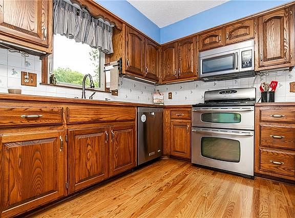LOOKING FOR A BEAUTIFUL HOME WITH A COMPLETE DETACHED SHOP RIGHT IN YOUR OWN BACKYARD? This tri-level home has more to offer than first glance. At first you see the lovely stone fireplace, vaulted ceilings, natural lighting, but be sure to notice the updated kitchen, updated bathrooms, new carpet & fresh paint. There's a lot of space for living and entertaining here with the open Great Room just steps to the updated Kitchen. Dining Room walks out to a huge Deck and enclosed Sunroom for even more areas to relax and enjoy. Deck offers morning sun, evening shade and a private view of trees. Primary Bedroom sports double closets and a private vanity/shower. Lower Level has two rooms, one of which could be used as an office or non-conforming 4th bedroom. Lower Level steps out to an underdeck Patio and big, landscaped backyard. Custom garage is perfectly designed with the car lover in mind. Extended double garage also has a third garage space and side storage room that opens to the back for additional entertaining on game day. NOW FOR THE WOW...the SHOP GARAGE in the back has 2 additional garage spaces plus plenty of space for work, play or hobby. It has a slab foundation, insulation, concrete floors, electricity, heat, AC, attic fan, running water and upstairs loft storage. It even sports a steel lift beam in the ceiling and a place for hydraulic lift (negotiable) in the garage floor. You won't believe the amount of backyard parking too! COME QUICK...you won't soon find such a lovely home with lots of added features plus backyard shop that is outfitted like this one! 2021-09-05