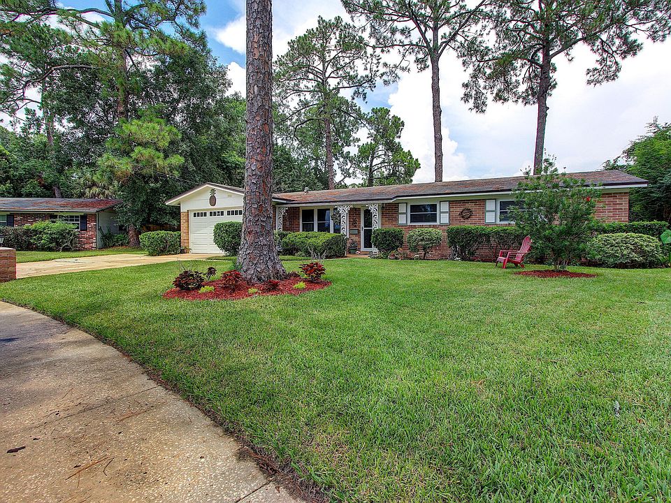 Welcome to your new home! This beautifully well maintained brick ranch is nestled in a mature established neighborhood. With extra-large fenced backyard perfect for children & animals to play, plus your very own pear tree. 3 Beds / 2 Baths, 1380 sq. ft., kitchen with breakfast bar, a separate living & dining areas. Sliding glass door opens from den area to a small patio, great for grilling out. Low maintenance all brick exterior with an inviting front porch, an oversize one car garage and double driveway. Home includes the following updates: roof replaced 2014; Amcraft double hung Argon Low E - no laminated glass 150 mph hurricane safe windows, gas water heater 2017. Great space with neutral colors and clean as can be, just waiting for you!
