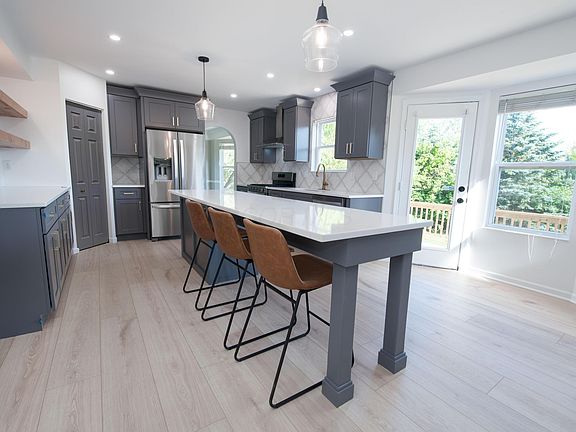 Originally built in 2002, the home has been completely transformed with high-end updates throughout. The stunning gourmet kitchen features brand-new quartz countertops, soft-close full-length cabinetry, a designer island with seating for six, brand new stainless steel appliances, and recessed lighting throughout—creating a perfect space for both cooking and entertaining.