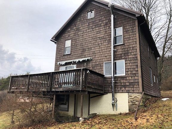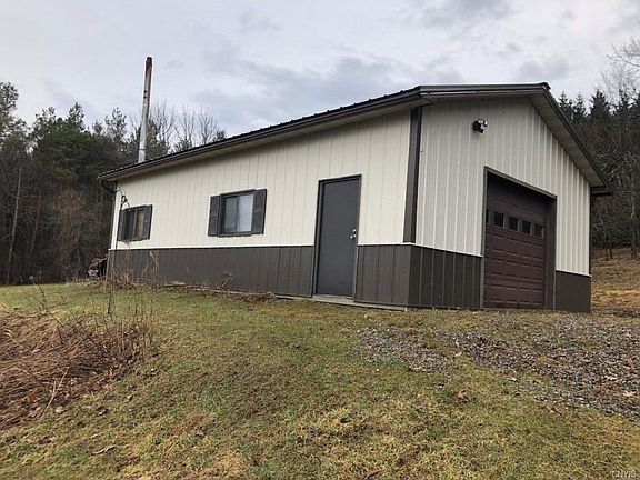 Elevated gravel driveway is approximately 5 tenths of a mile to the property from a maintained year-round road. Currently, the house is being used as a second home. Great off-the grid property. Would be perfect for homesteading. The home includes a spacious eat-in kitchen with barn-board built cabinets, dining room which leads out to a wrap-around porch overlooking the spring-fed pond and fantastic views of the valley, 3 bedrooms, 2 full bathrooms, and a mudroom. Lots of windows throughout the house. Garage is a 25 x 36 insulated pole building with cement floor and electric. Land is a mixture of pines and hardwoods. Food plots throughout the property. Lots of wildlife for excellent hunting! Established hiking and ATV trails are throughout the property as well.