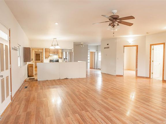 Need room to roam? Then explore this lovely 3 bed, 1 flex room, 2 bath ranch home on 2 level acres. This will need some finishing touches before moving in, so bring your ideas! Has been freshly primed and ready for more. At this price there is instant equity after repairs. Expanding families will covet the open floor plan, separate dining area, and main-floor laundry. Maintenance-free exterior w/vinyl siding & metal roof. Huge, oversized 2-car garage/workshop area, is over 900 SF of space. Enjoy life on acreage from the 60 ft. long deck. GREAT LOCATION AND PRICE! This has been legally affixed to the property.