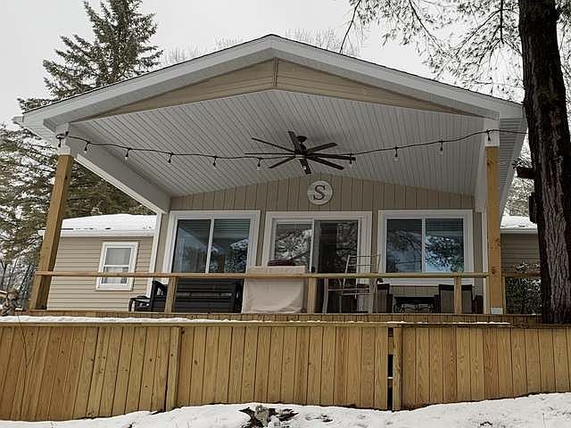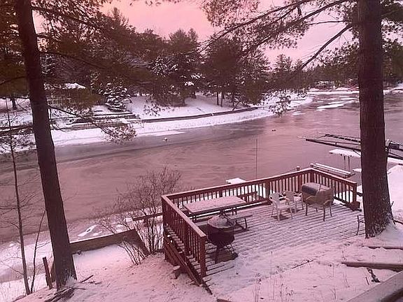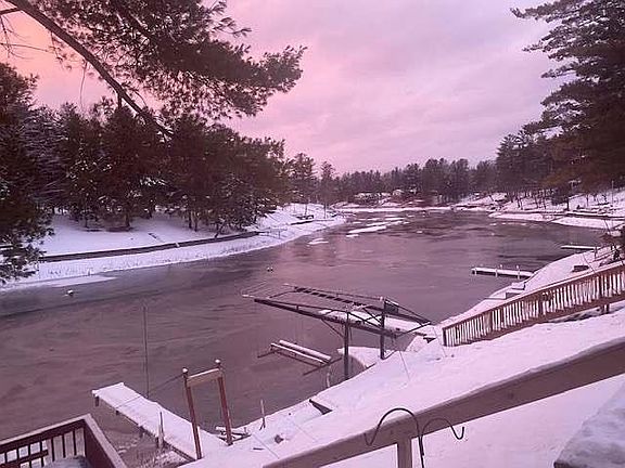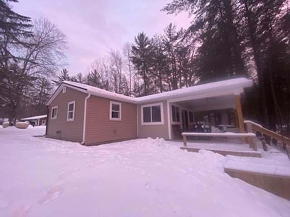 Newly remodeled waterfront home with large 30 X 40 pole barn and a very comfortable guest house with cathedral ceiling. Beautiful kitchen, ceramic tile bathroom with walking shower and Corian sink top, Knotty pine kitchen walls & pickled knoty pine walls in the living area that really brighten up the room, waterfront sunroom with cathedral knotty pine ceiling and door wall to the covered deck with cathedral ceiling & ceiling fan attached is a large open deck as well. Two additional lower decks for Sunning near the water. Suspended dock & seawall.