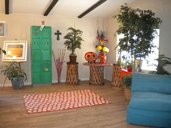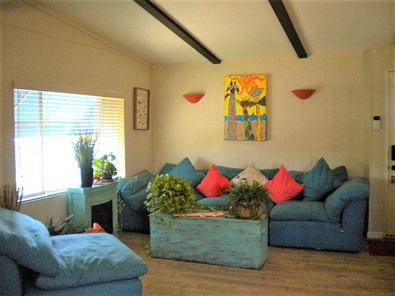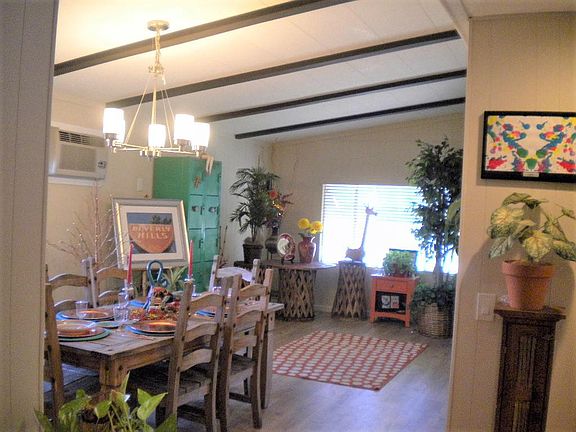 This home has been updated and is move-in ready. Newer flooring, new kitchen and bath counter tops, newer appliances. Open floor plan with formal dining room and beamed ceilings. A spacious addition with separate entrance and spacious closets and a room air conditioner , could be used as a game room or study/office. The yard is completely fenced with vinyl fencing & gates and a covered concrete patio & a shed. Backyard is completely private with no homes behind.and features views of Mt San Jacinto & San Gorgonio. Palm Desert Greens is a 55+ community on Fee land (You own the Land) the HOA fees 24 hour gate-guarded access, includes golf privileges, a restaurant & bar, pools, library, fitness center, tennis courts, This home is being offered with a golf cart (golf cart needs batteries) some furniture negotiable with exception of personal artwork is included at no cost to buyer.This home is on a permanent 433a foundation for ease of financing.