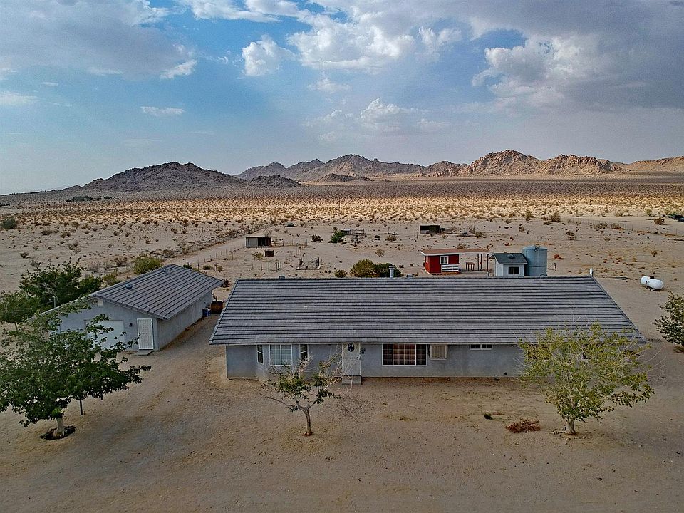 Custom Stucco Ranch Home with a tile roof built in 2002 on 4.8 Acres. Private well with a 5,000 gallon reserve tank. 4 carpeted bedrooms, 2 baths. Extensive use of ceramic tile throughout. Large master suite with soaking tub and walk in closet. Large kitchen for entertaining. Indoor laundry and a big walk in pantry. Large 960 SqFt. fully insulated and air conditioned garage would make a great workshop or storage facility. Sweeping views of the nearby Buttes and mountains.