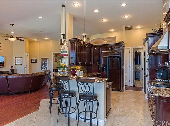 It is truly a rare find to get flat and usable acreage along with a panoramic city lights view!. The expansive views from the house cover the wine country, and the 4.37 acres is flat, fenced and cross fenced, serviced by both a well and city water. Even better is the fact that it is 2 separate parcels, so you can build another home. The home has a huge amount of garage space with an attached 3 car garage AND a detached RV Garage (with the 3rd bath) of approximately 1500 sq ft. It is 44' deep and will hold just about any RV, and there is parking for at least 8-10 cars. This property is a collector's or hobbyists dream. The single story floor plan has massive windows in order to take advantage of viewing the pebble tec pool and spa, as well as balloons floating by. The open design concept with a Great Room has wood and heated travertine floors, granite counters, stainless steel appliances, fireplace, plantation shutters, over sized laundry area with plenty of storage and deep sink. The master bath has plenty of space with dual vanities, separate spa tub and shower, and custom shutters. The negative edge pool and spa as well as the fire pit are located for the perfect view. The is paved road access almost all the way to the house, with only a very short distance of dirt road. This property has plenty of room for planting a vineyard, horses, tennis court, whatever suits your needs!