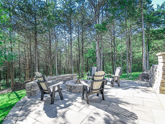 FABULOUS newer build! Private! Luxury on 3.11 acres! Great outdoor spots: front porch, huge lower patio (w/TV mt), immense upper trex deck (w/TV mt) partially covered w/wood vaulted ceiling & shades, or take a stone path to an incredible 25 x 18 stone fire pit area, arched, lit, w/stone steps & retaining wall, complete w/woods behind! Spectacular inside & out! Wood floors! Open floor plan! Great room w/gas FP, built-ins, & vaulted ceiling! Enjoy the views from lg, windows & glass doors! Magnificent kitchen! Dark island w/lighter granite & sink, darker granite counter tops on 2 walls w/white drawers & cabinets, charcoal stainless appliances incl. gas stove! Split bedroom plan! Huge master ensuite w/his & her walk-in closets, walk-in tiled shower, dbl vanities! Bedroom 2 & 3 have walk-in closets too! Office! Lower level has beds 4 & 5, 3rd bath, gigantic family room, & super bar area of granite & stone! Wonderful workshop & storage area by 3rd garage! Rainbird in oversized 2 car main garage.