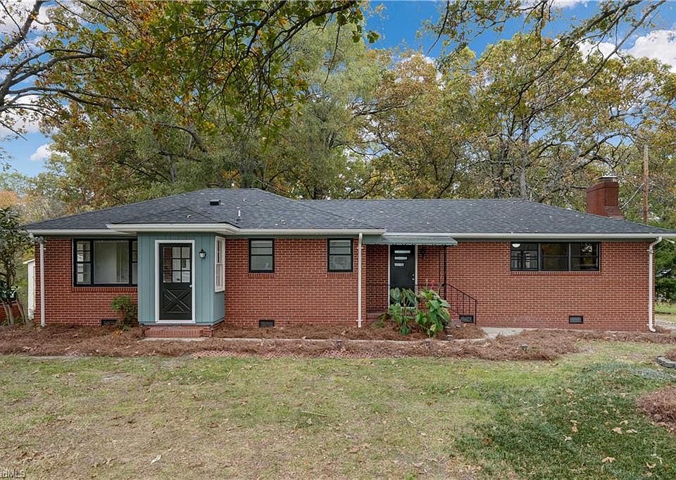 Do not miss this charming brick one level home in the Sedgefield area on almost an acre. Convenient location. Minutes from Grandover resort and close to great shopping and restaurants. As you step inside, you’ll find a cozy living area filled with natural light with a fireplace and built-in corner cabinet. Beautiful hardwood flooring enhances the warmth and design. The kitchen features a bar seating area for quick meals and a new smooth top oven range. The recently painted cabinets and the pantry provide great storage. This home features 2 bedrooms and 1 full bath. The covered patio overlooks the spacious back yard. Enjoy the added bonus of a sunroom that brings the outdoors in with lots of natural lighting. The backyard offers a detached 2 car garage, a fire pit and even a set up for a game of horse shoes or a small putting green to practice your golf game. Detached garage is great for storage or a potential workshop!