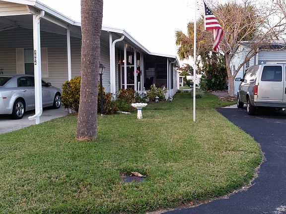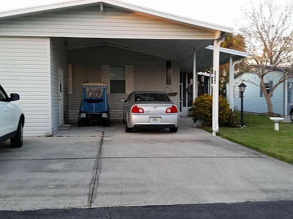 Gated community with clubhouse and community pool, shuffle board, bocci ball court, park areas. Home is a 2 bedroom, 2 bath, doublewide manufatured home with large dining, living and Florida rooms, breakfast nook, inside laundry, central air and heat. Screened in porch provides additional living area, along with covered patio. Utility room in 2-car carport provides additional storage. Additional parking up to 3 more cars in driveway.