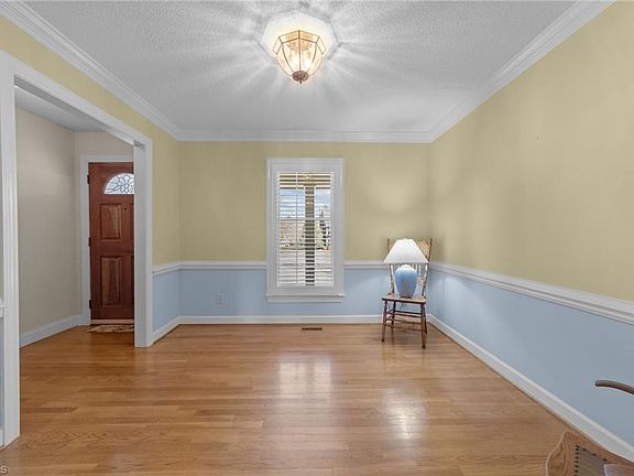 Immaculately maintained 4 bed/2 bath brick ranch nestled on a spacious 1.07-acre lot in beautiful Hickory Meadows subdivision in Greensboro. Enjoy elegance and charm with hardwood floors, plantation shutters, chair rail crown molding in the dining room, and a kitchen featuring granite counters, stainless appliances, double crown molding, and custom rotating pantry cabinet. Relax in the stunning Florida room with cathedral ceilings and abundant natural light overlooking the expansive backyard. Living room offers warmth with a floor-to-ceiling brick gas log fireplace. Primary bedroom boasts plantation shutters, walk-in closet, and en-suite bath with quartz double vanity. Three additional bedrooms conveniently located near a tiled full hall bath. Exterior features include a rocking chair front porch, rear deck, oversized 2-car garage with workshop, and ample paved parking. A rare find combining space, style, and location!