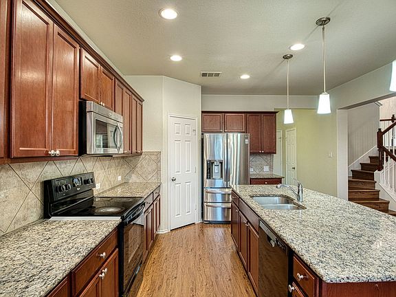 Nice 3 BR, 2.5 BA home with a private backyard in Preston Village! High ceilings make the house luxury style. The open floor plan with living area, dining area and kitchen makes house very functional. Kitchen offers granite counters, SS appliances and an island with breakfast counter. Upstairs Primary Bedroom & Bath with large shower and walk in closet. Has a perfect space for game room and 2 bedrooms and full bath. Private landscaped backyard with Covered Patio for entertaining. Community pool, playground, sports court. Conveniently located close to Mopac, 45 and 35, Domain, Dell, Apple Campus, IBM...all this in RRISD. Refrigerator included! $20 will be due in addition to the rent each month in participation with the HVAC filter delivery program. *1/2 month of rent not to be used on first month's rent*