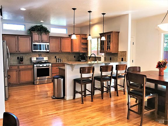 Well Built home w/upscale finishes. New Paint & Carpet! *New Screens, Fence & Garage Paint. Roof & Exterior Paint 2017. East facing, Sunny morning Kitchen w/abundant cabinetry & extra granite counter space. Bar opens to Dining & Living areas offering a Roomy Great Room feel, perfect for Entertaining! Hardwood on main floor, Cozy Fireplace to snuggle by & Bedroom is easily an office. Laundry w/storage; Drop zone leads to 878 SF Extended Bay Garage for large trucks, workshop & extra toy storage. Light & Bright, the Grand Bonus Room upstairs w/many windows adds Extra Sun in Wintertime! Spacious, separate Master Suite w/Tiled Shower & Large Walk in Closet. Tiled Bath & Laundry floors. E facing backyard, covered Porch & Patio offer relaxing shade & sun. Can Close Quickly! Desirable area and well kept. Close in location w/park, landscaping, paths & only 2 Blocks to clubhouse, gym & pool! Minutes from Shops, Dining, Schools, Downtown Boise, Parks & I 84. Interest Rate Locked In 10/17 for Con & FHA see Docs!