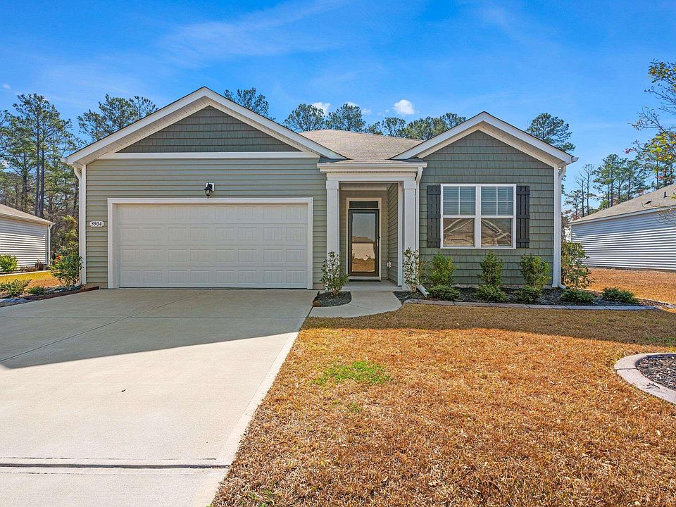 Welcome to this lovely 3 bedroom, 2 bathroom ranch home in a natural gas community!  This home offers a split-bedroom layout, spacious open floor plan, and attached two car garage.  Upon entering the living area, you’ll see it is open to the modern kitchen with a large island, gas stove and granite counters. Past the kitchen you’ll enter the large primary bedroom, which includes a large walk in closet, bathroom with dual vanity and walk in shower. Beyond the living area to the backyard is a screened in porch leading to the large backyard which is completely fenced in with a pool ready fence. The front landscaping is surrounded by beautiful curbing and the entire property includes irrigation for easy maintenance. The home comes with gutters and private backyard that backs up to woods. Don’t miss the opportunity to tour this beautiful home with easy access to downtown Conway, Myrtle Beach and North Myrtle Beach!