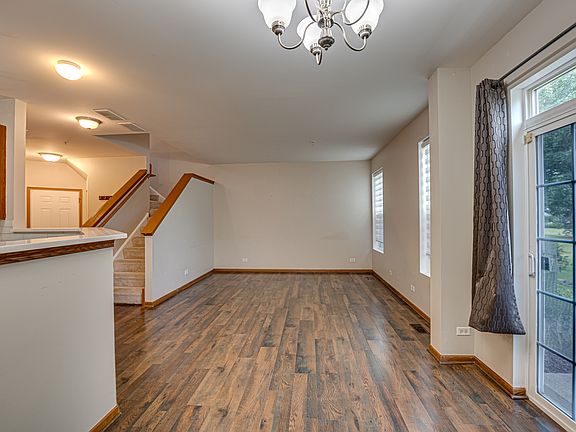 Upon entry, you'll immediately notice the rich laminate wood flooring that extends throughout the entire first floor, enhancing the open-concept layout and creating a warm, cohesive living space. The spacious kitchen is a standout feature, offering abundant cabinet storage and stunning newer quartz countertops that combine modern elegance with lasting durability. Flooded with natural light, the expansive primary suite provides a serene retreat, complete with a luxurious bathroom featuring a separate soaking tub and shower. The generously sized second bedroom is bright and welcoming, with a full bathroom conveniently located just outside the door. Additional storage is thoughtfully integrated throughout the home, including ample closet space. Upstairs, a large loft currently used as a recreation room offers the flexibility to be converted into a third bedroom, while a secondary loft area is ideally suited for a home office. A dedicated laundry room includes a full-size washer and dryer, and the attached two-car garage offers added convenience. Step outside to enjoy the private patio with a charming garden ambiance. Tinted windows throughout the home provide both privacy and energy efficiency. Directly across from the unit, a large park offers open views and stunning sunsets. This home is ideally situated with easy access to I-88 and just minutes from shopping, dining, entertainment, and theaters.
