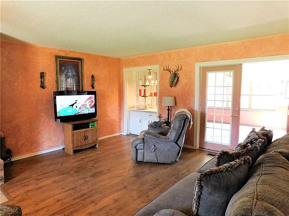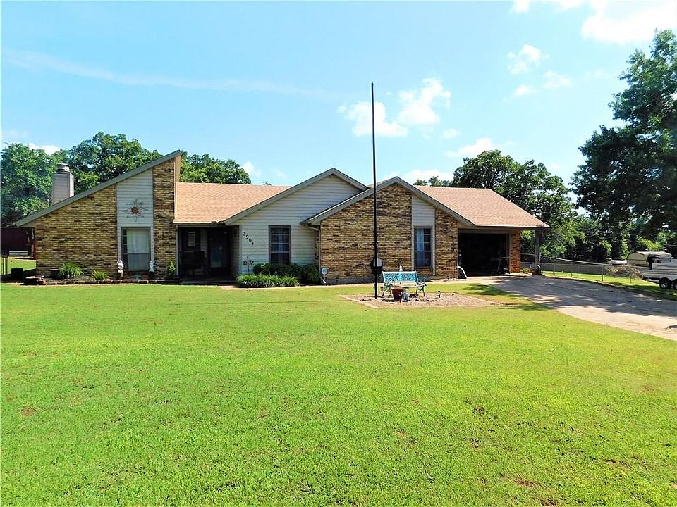 Neat, clean, well maintained ranch style home with plenty of updates and all you can ask for in a home. You will know as you pull up this home has been well maintained and cared for. Hosted by an extra long driveway and oversized 2 car garage. New flooring leads you to your living room which is opened to dining and well designed remodeled kitchen. Living room offers a fireplace, ceiling fan and a wet bar. Kitchen has new granite tops and has all the major appliances. All 2 guest bedrooms are nice sized with good closet space and share a remodeled bath. The master suite is just huge and offers a good size walk in closet and a whirlpool tub. Nice backyard, completely fenced. In Ground storm shelter, storage barn and a guest house out back that could be used for a playhouse. A closed in back patio has the additional 231 square foot with walled windows and designer ceramic flooring. Tax records do not reflect the sunroom square footage