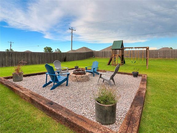Come see this one-owner home in the sought after Mustang School District. This home has 4 bedrooms and 2 baths with a great open floor plan into the living room. The kitchen offers you granite countertops, large pantry, gas stove with a pot filler faucet and built-in microwave. The master bedroom is spacious with room for a sitting area. The master bathroom has granite countertops with a oversized walk-in shower with double shower heads. Once outside you will be greeted with a covered patio and a fire-pit with a big backyard. You will be able to enjoy the afternoon sun with the backyard facing East. This home offers many features including, a storm shelter, 3 car-garage, hot tub hook-up, french drains, storm doors and a versatile floor-plan. It is conveniently located with easy access to I-40 and HWY 152. Canterbury features a neighborhood pool, park and a picnic area. Come see this home and make it yours before it's gone!