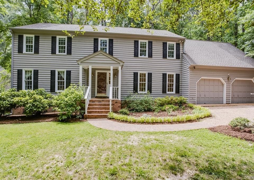 Open House Cancelled! Classic Colonial with a lovely blend of formal rooms and an open concept kitchen and family room in Brandermill's best cul de sac! Walk to Sunday Park events, Brandermill Country Club golf, pool and tennis. French doors to formal living room with crown molding, hardwood floors and chair rail molding in dining room. Kitchen with Corian countertops, tile backsplash and ceramic tile flooring opens to bright breakfast nook and family room with brick fireplace. Four season sunroom has sliding doors and two new skylights. Large deck and a backyard that is super fun to play in! Second floor has a huge master with a large master den attached, double sink ensuite bathroom and large walk-in closet. Bedroom two also has direct access to hall bath, bedroom 3 is big and bright, bedroom 4 has hardwood floors and access to walk-up attic. Laundry room has a utility sink and additional closet. Two car garage with direct entry to a drop zone and half bath. Newer windows. HVAC Trane system installed 2011. Newer Roof (2011) with a 50 year warranty. Call today for your showing appointment!