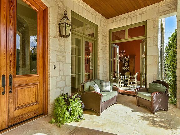 Classic, beautiful Texas Traditional home on huge 2 acre wooded lot. Tall ceilings with beautiful tall wood windows & doors create great light & views of outside. Stone interior walls & concrete floors throughout the main level. A large master bedroom on main level & adjacent office/study that could also serve as a guest bedroom. Upstairs there are 3 additional bedrooms and a large game room. Gated community with easy access to schools, Austin Country Club & shopping.
