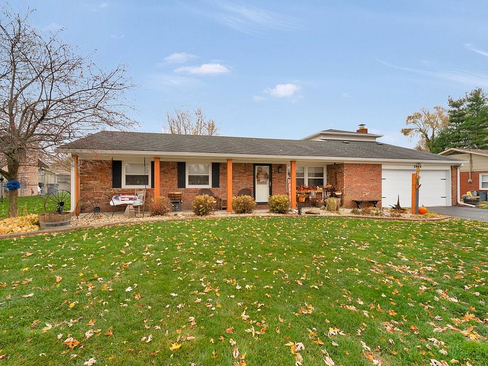 Welcome to Tulip Lane in Terrace Meadows! This brick ranch home offers a warm welcome with its covered front porch and low-maintenance landscaping. With its modest exterior, you might never guess that this home really opens up inside! Featuring 1.5 stories and 2,092 square feet, your home offers two living spaces, two bathrooms and FIVE bedrooms! Entering into your first living space, the smooth floors and subtle wall colors offer a neutral backdrop for you to really make this your own. Front facing windows invite natural light into the space too. The kitchen island offers additional storage, makes meal prep a breeze and is just the spot to set out some holiday snacks. The eat-in area is separate enough for more of a formal dining experience while also keeping everyone in the mix. Your second living room is spacious and cozy with plush carpet and a floor-to-ceiling brick fireplace. There are so many options for holiday décor here! Outside your backyard is fenced-in, so you can watch the kids play and let Fido run freely. Updates include a newer furnace, keeping you warm this winter to enjoy the season.