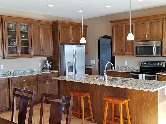 HUGE PRICE ADJUSTMENT ~ MOTIVATED SELLERS. OPEN HOUSE MAY 19TH 12-1 PM. The elegant floor plan will entice you from the minute you walk in the door. This home features an open floor plan. Enjoy evenings by the tiled fireplace overlooking panoramic west facing views. The large gourmet kitchen features granite countertops, breakfast bar, large pantry with separate cookbook/desk area. Walk out the sliding patio doors to a maintenance free deck, and stamped concrete patio with gas fire pit line. The extra large mud room has a bench with storage, and its own walk-in closet. The office by the front door finish off this floor. Upstairs you will find three bedrooms, as well as a large master bedroom suite. The master bath has a large soaker tub, walk in shower, and an enormous master closet. You will appreciate the conveniently located laundry room upstairs, right next to the bedrooms! The fully finished daylight basement has a large family room, game room space, an additional bedroom, and a 3/4 bath. Perfect for entertaining, or hosting a game day party!