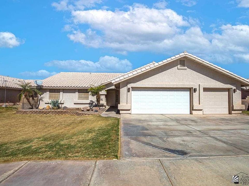 Tile throughout this 4 bedroom home. Open vaulted floor plan, kitchen breakfast bar open to living and dining areas with sliding door to back covered patio. Laundry room. Ceiling fans throughout. Full hall bath, primary bedroom with 3/4 bath shower, 2 sinks, walk in closet, vaulted ceiliing and sliding door to covered patio. Cul de sac location, 3 car garage, 8,736 SF lot, pool is fenced with plenty of room for play yard. Owner/Agent.