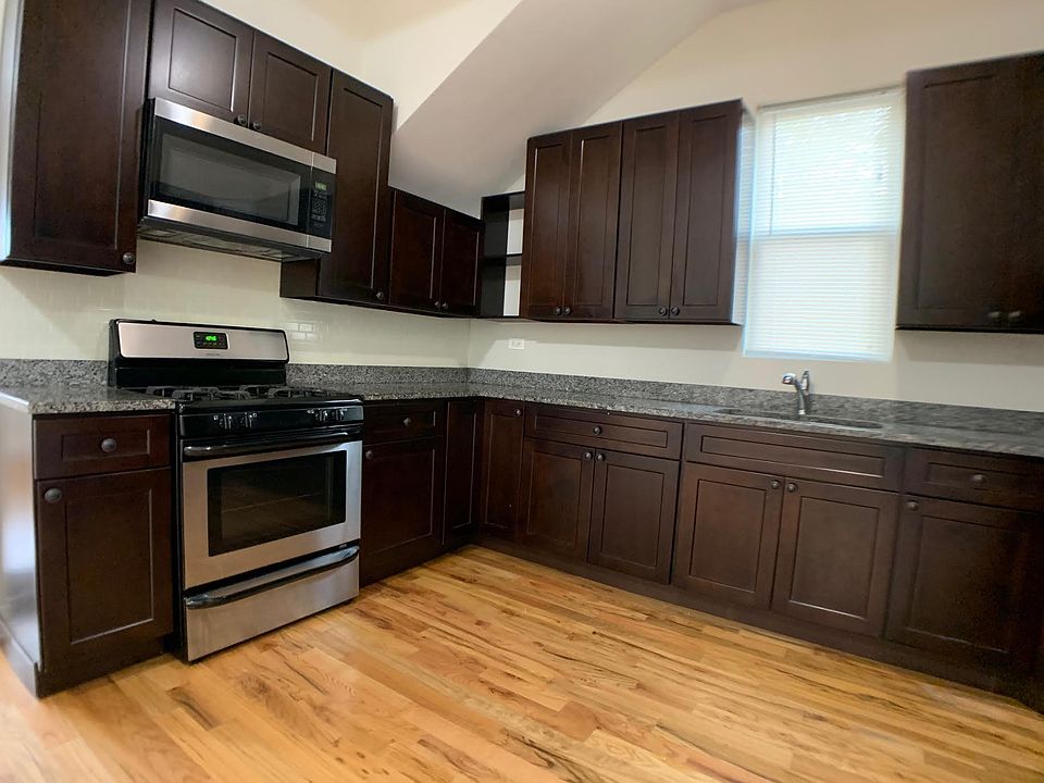 Beautiful rehabbed 2 bedroom 2 bath Hardwood floors throughout Spacious living room and dining room combo Fully updated kitchen with espresso stained cabinets and granite Stainless steel stove, fridge and micro-hood 1 outdoor parking space included PLEASE NOTE BEDROOMS ARE VERY SMALL. Central air/heat Laundry in basement Qualifications to rent. Credit score must be at least 600. There is a $50 application fee per adult. Household gross monthly income must be at least 3x the rent - No exceptions Also, there is a $400 non-refundable move in fee and 1st month's rent to move in with most credit, we may ask for a deposit. $200 non-refundable pet fee for cats, 2 max. $300 non-refundable pet fee for dogs, 2 max, Tenant pays all utilities except water. Owner pays water and trash. Tenant pays electric and gas(heat).